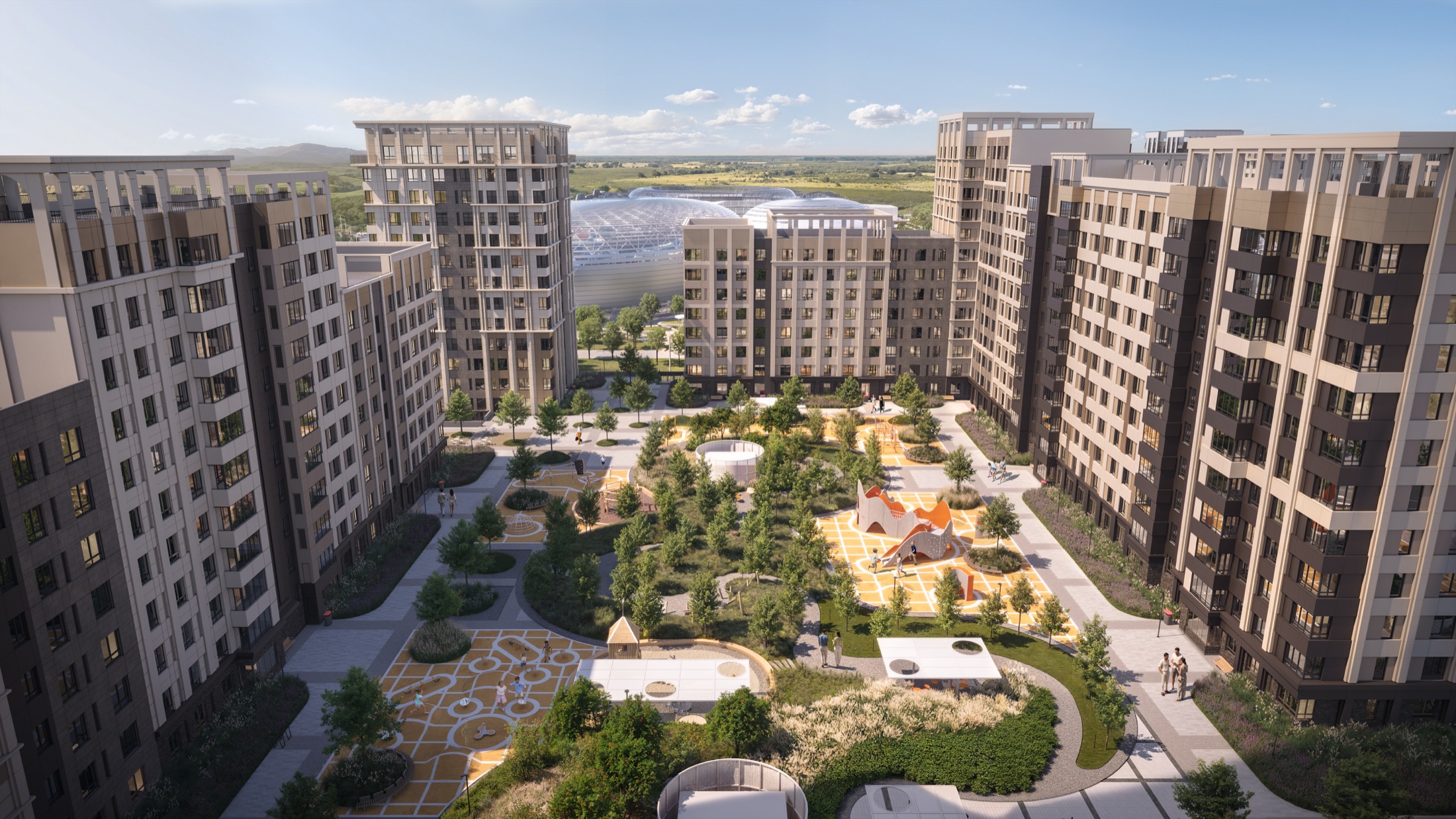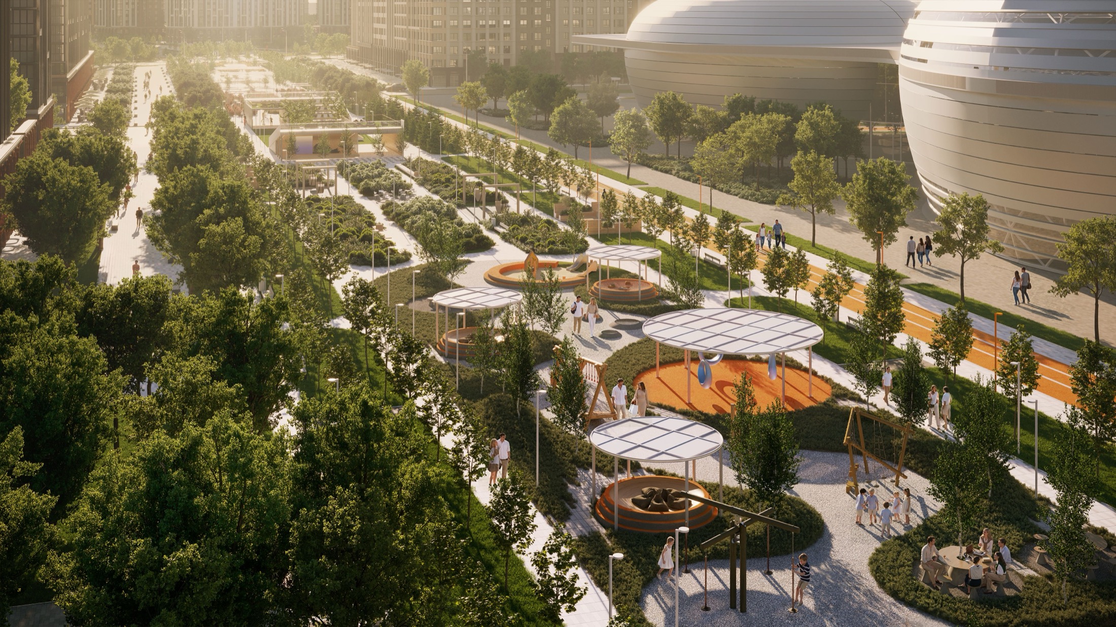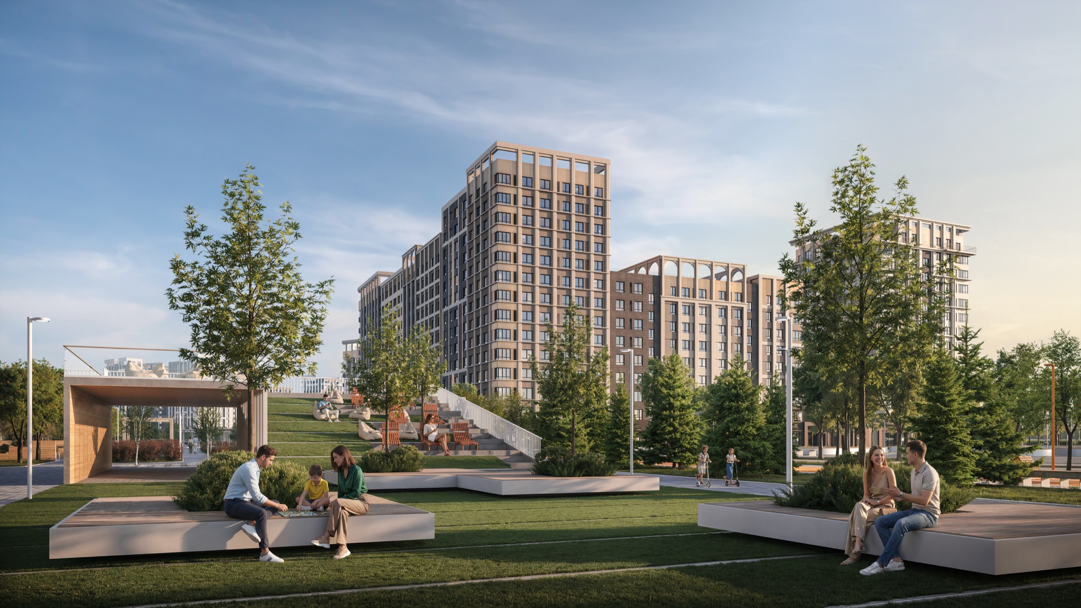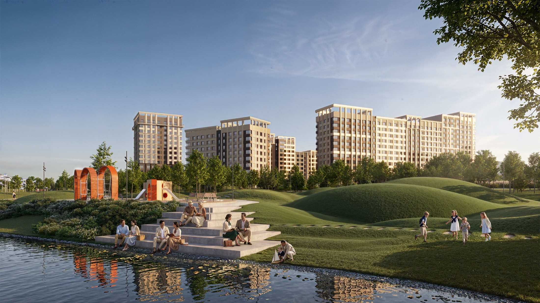 Формат проекта читается сразу: это не отдельные дома в красивой локации, а полноценный городской уклад, встроенный в природу.